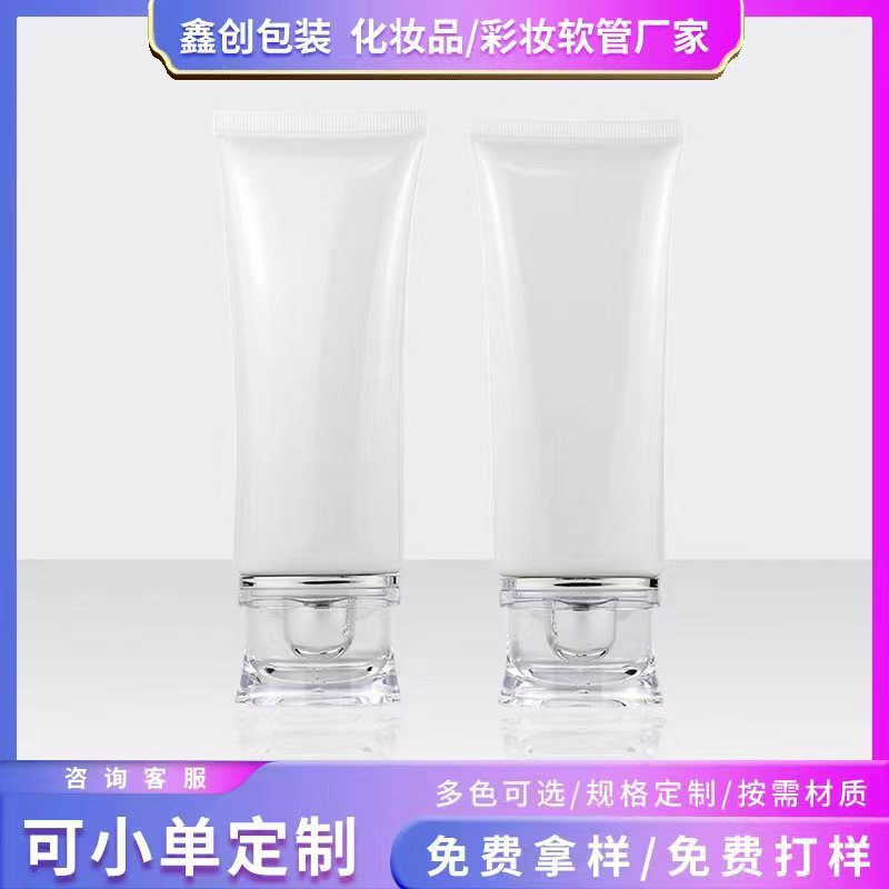 スキンケア製品チューブ包装材 120 ミリリットルスクリューキャップ洗顔料チューブコンディショナー湾曲したテールチューブ正方形と円形の蓋
