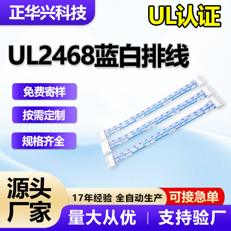 UL2468青白ケーブル端子線、在庫あり、すぐに製作可能、完全な仕様、長さ調整可能、配線ハーネス無料サンプル提供