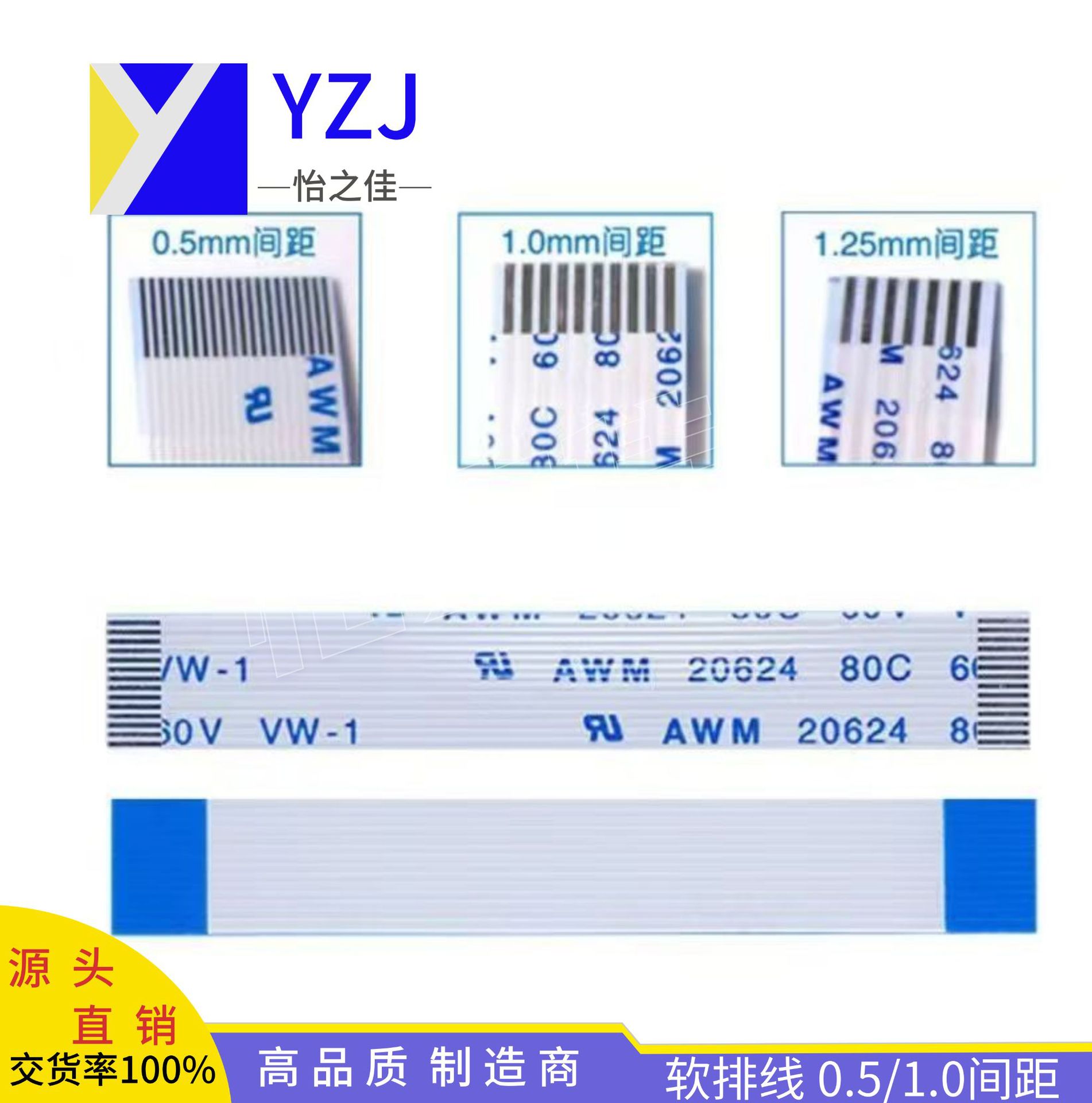 ffc/fpcケーブルAWM20624スピーカーフラットフレキシブルケーブル1.0ピッチ10cmスマートロックケーブル接続