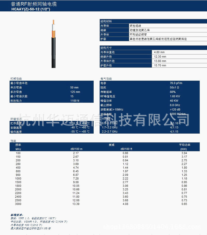 Rf coaxial feeder cable 1/2 HCAAYZ-50