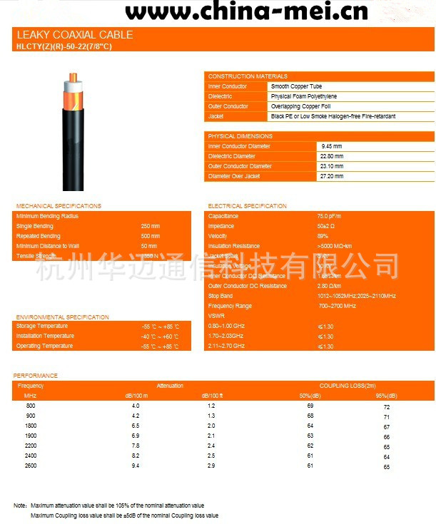 Rf radiating coaxよだれかけ,leakyよだれかけ50-22
