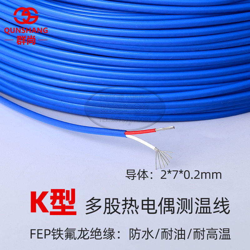 精密級k型多股平線2*7 * 0.2mm熱電対測温線テフロン防水耐油感温線