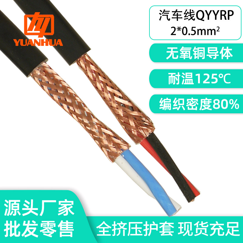 125度自動車シールド線QYYRP2芯 * 0.5平方耐ノイズ信号伝送線青白/赤黒線芯