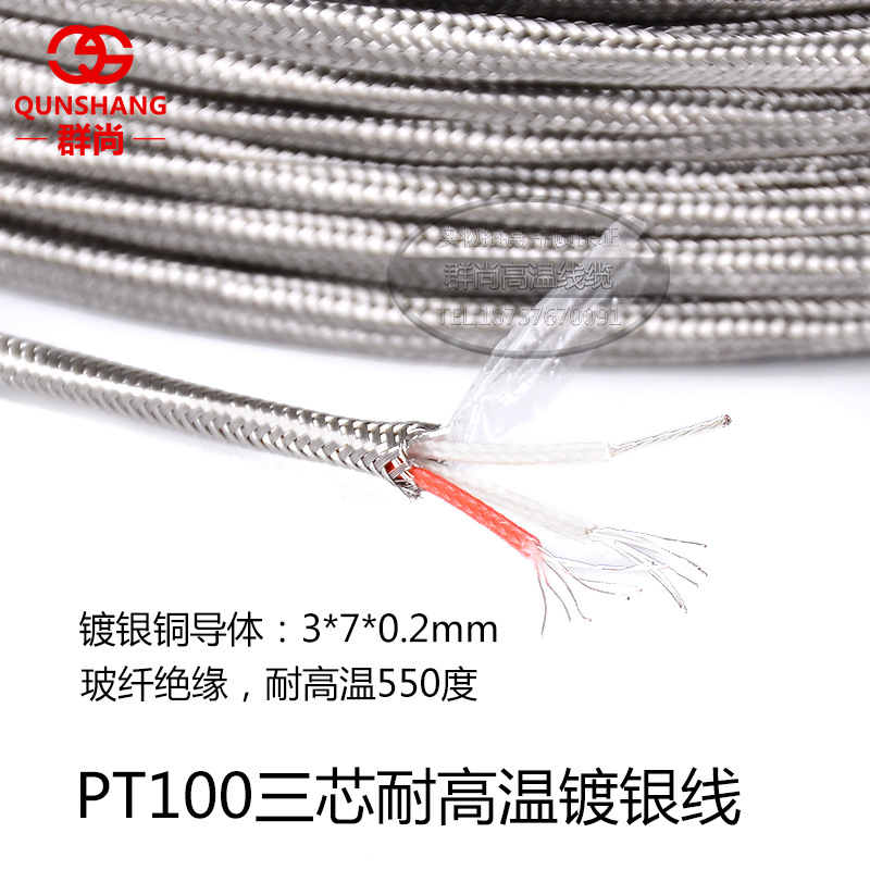 Pt100プラチナ熱抵抗接続線3*7 * 0.2mm三芯銀メッキ耐高温温度センサー線