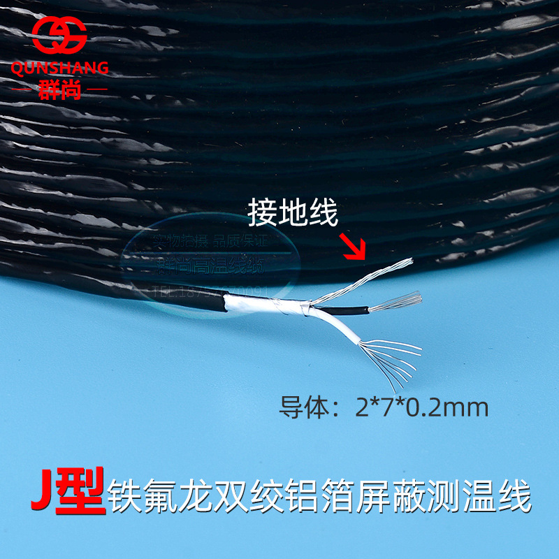 Jタイプ2*7 * 0.2mm熱電対アルミ箔シールド測温線テフロンツイスト麻花防水感温線