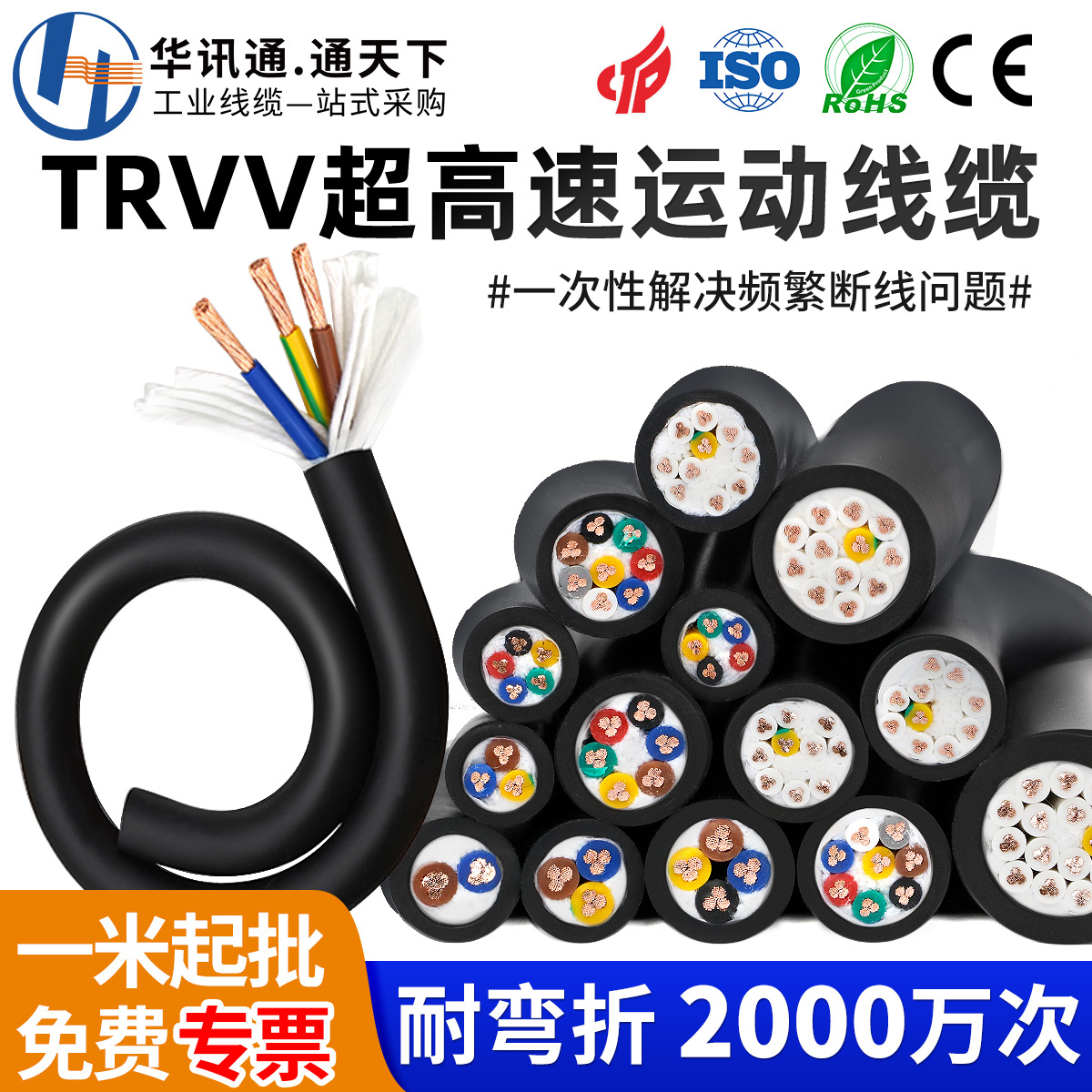 TRVV高フレキシブルケーブルケーブル耐曲げ耐油耐摩耗性0.3/0.5/0.75/1/1.5/2.5平方