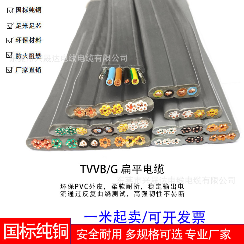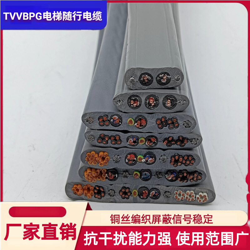 Tvvbg 40芯0.75平方帯鋼線エレベータ随行フラットケーブルメーカー直販抗拉純銅国標