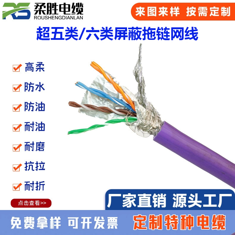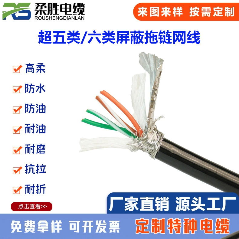 超五類/六類工業シールドケーブル防水耐屈曲フレキシブルケーブル8芯シールド付き