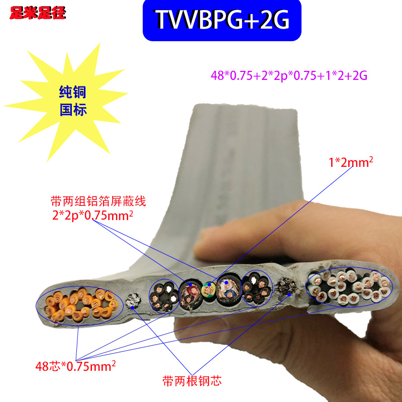 Tvvbpg 48芯0.75平方帯鋼リボンシールドエレベータ随行フラットケーブルメーカー直販純銅