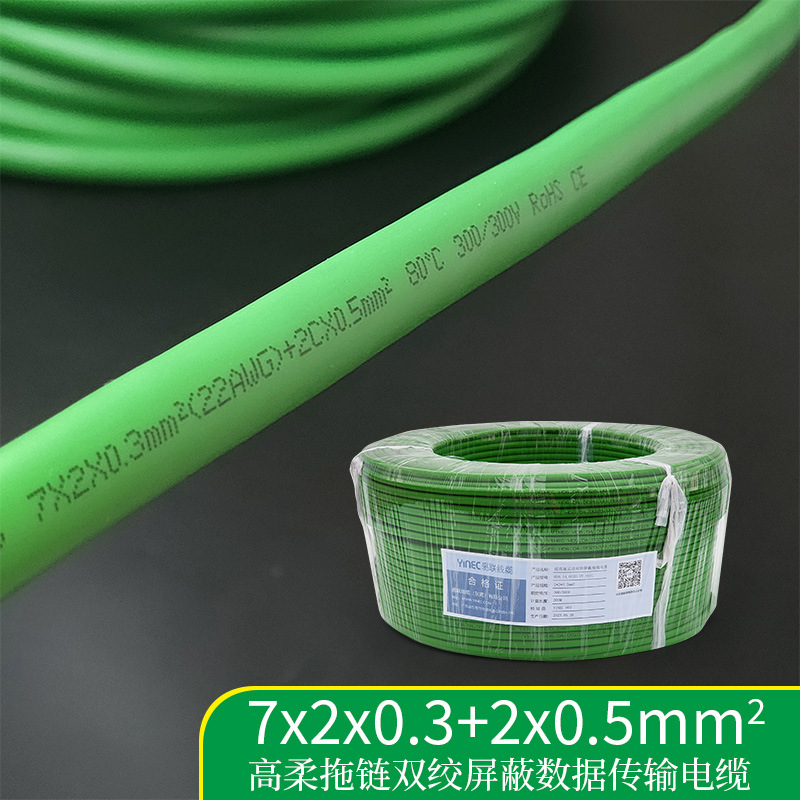7x2x0.3 2x0.5mm 2防油耐摩耗性高柔ドラッグチェーンツイストシールドデータ伝送ケーブル超耐折曲げ