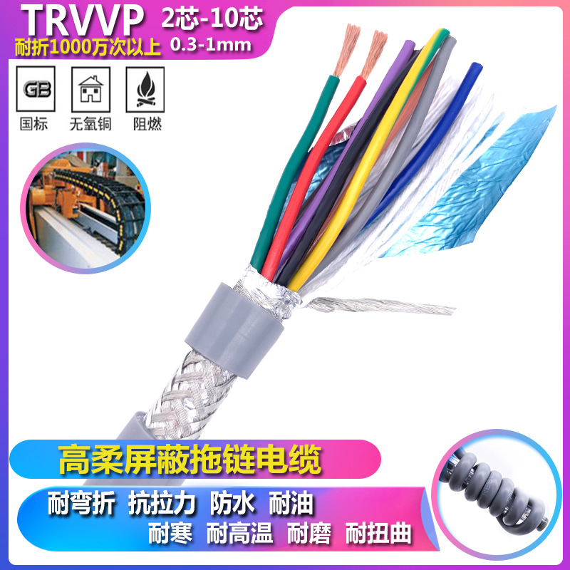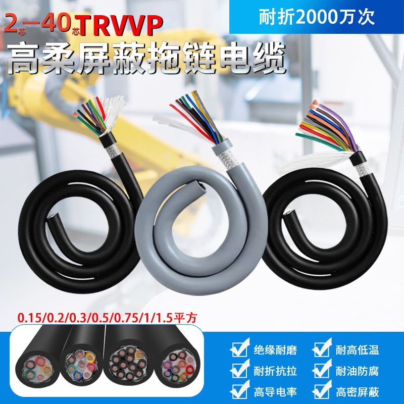 TRVVP耐油耐曲げ2芯3芯4芯8芯10芯0.3/0.5平方高柔ドラッグチェーンシールド線