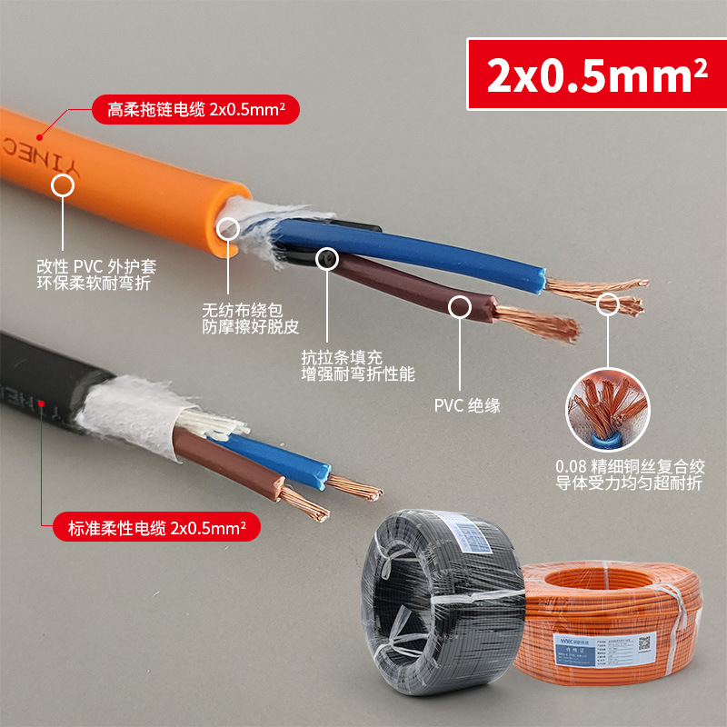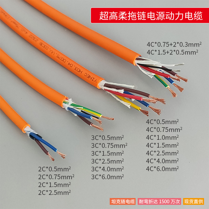 2芯3芯4芯6芯電源動力ケーブル高柔ドラッグチェーン耐曲げ1500万回メーカー現物直供