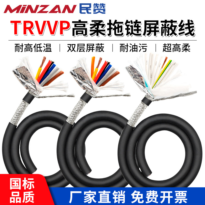 Trvvp高フレキシブルシールドチェーンケーブル4芯0.2平自動化ロボット耐曲げ移動ケーブル