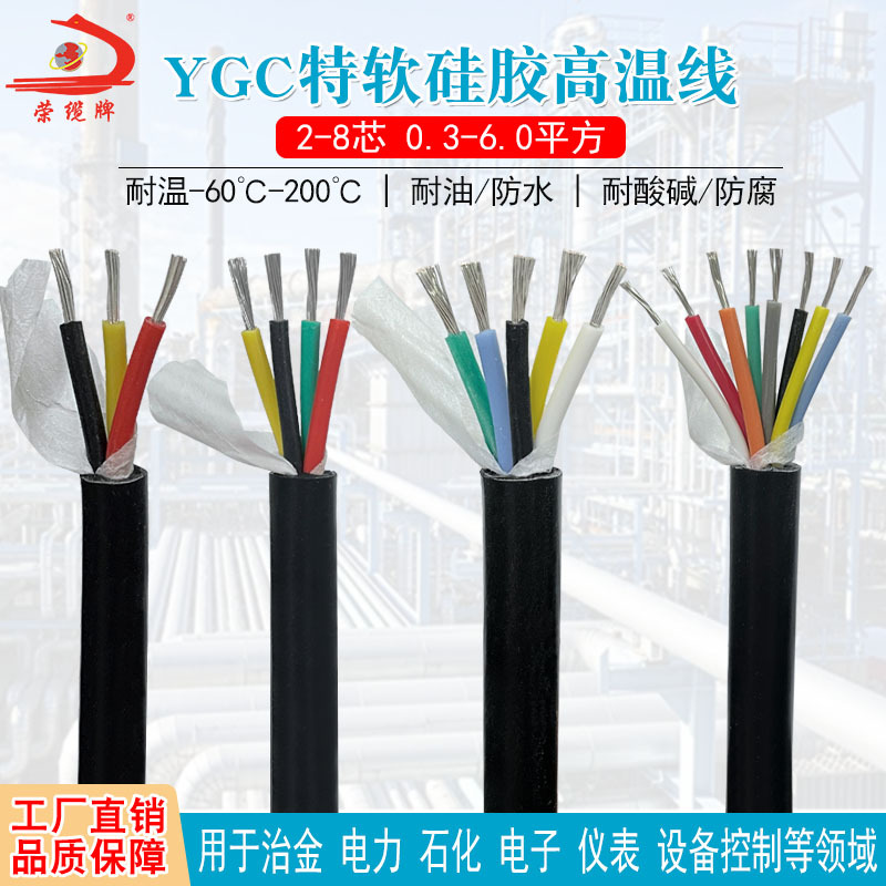 特軟シリカゲルケーブルケーブルygc 2 4 5 6 7 8芯高温電源コード耐高温シース信号線