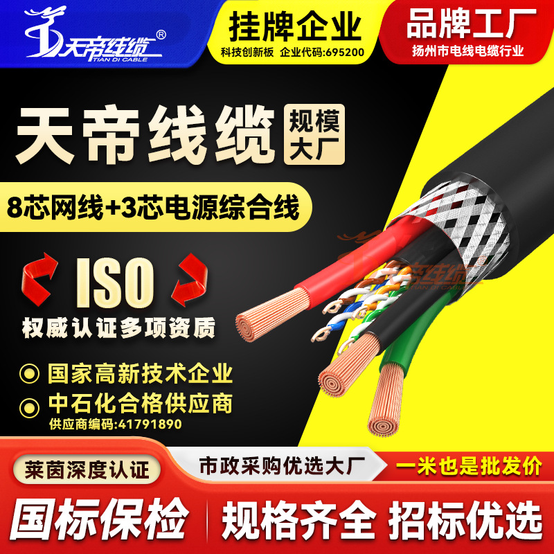天帝総合線8芯ケーブル + 3芯電源線一体線複合監視ネットワークケーブル錫メッキシールド