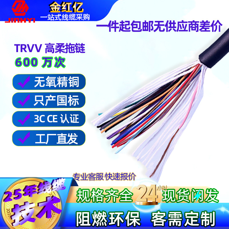 国家標準高柔軟性ドラッグチェーンケーブルtrvv234芯、耐油性、耐屈曲性、ロボット用、600万回の使用可能、0.2特殊仕様