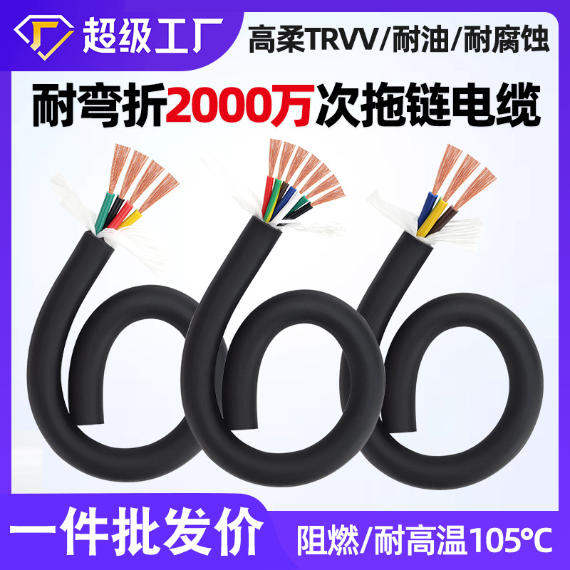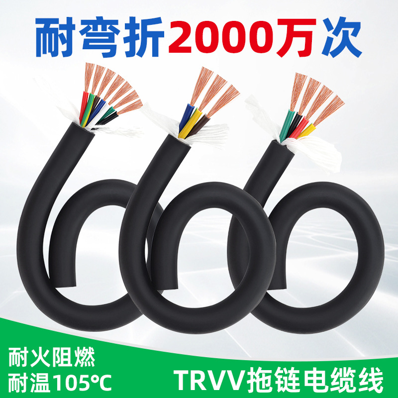 100m 送料無料 TRVV ドラッグチェーンケーブル 2000 万回の曲げ耐性 4 芯 5 芯 6 芯ロボット高柔軟ケーブル