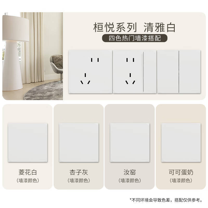 シュナイダー製コンセント、桓悦マット仕上げスイッチパネル、家庭用単一開閉式二重制御86型壁埋め込みコンセント(スイッチ付き)