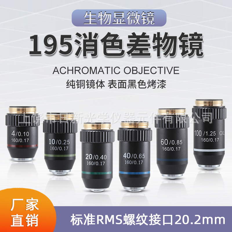 195色消し黒対物レンズ顕微鏡対物レンズ4x10x20x40x60x100x高倍鏡