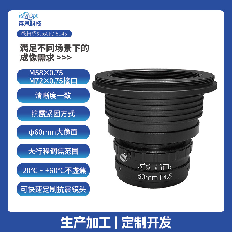 ライアン工業線スキャンレンズ60IC-4056不虚焦点 φ60大像面大ストローク輝度均一耐震