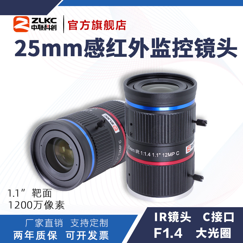 25mm監視カメラレンズF1.4昼夜補正レンズC口1200万画素ITS感赤外レンズ