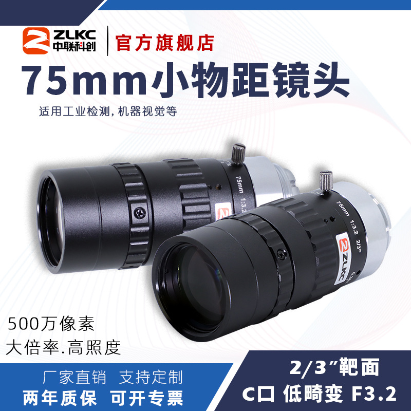 マクロ倍率レンズ75mm高解像度工業用レンズCポートF3.2大被写界深度低歪カメラレンズ