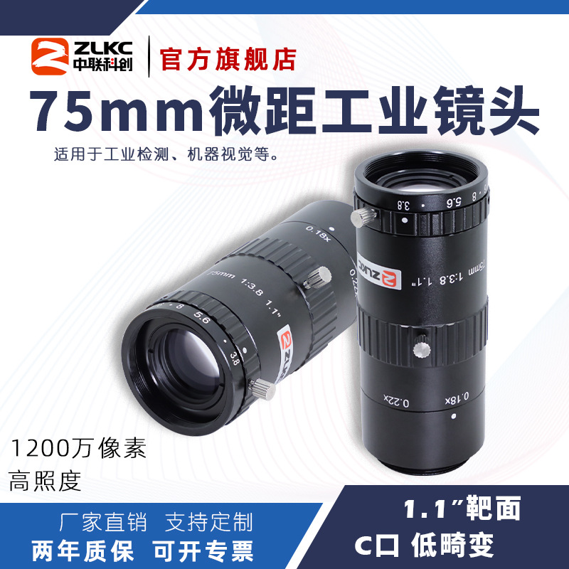 75mmマクロレンズ拡大倍率1200万画素1.1インチC口大ターゲット面低歪み工業レンズ