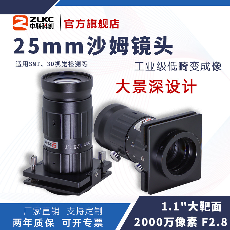 シャムレンズ25mmハイビジョンシフト軸低歪F2.8工業レンズ2000万画素1.1インチSM口