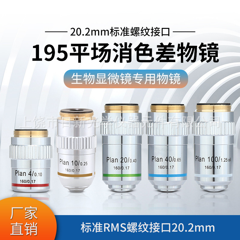 江西鳳凰195平場消色差対物レンズ4x10x40x100x平場対物レンズ生物顕微鏡対物レンズ