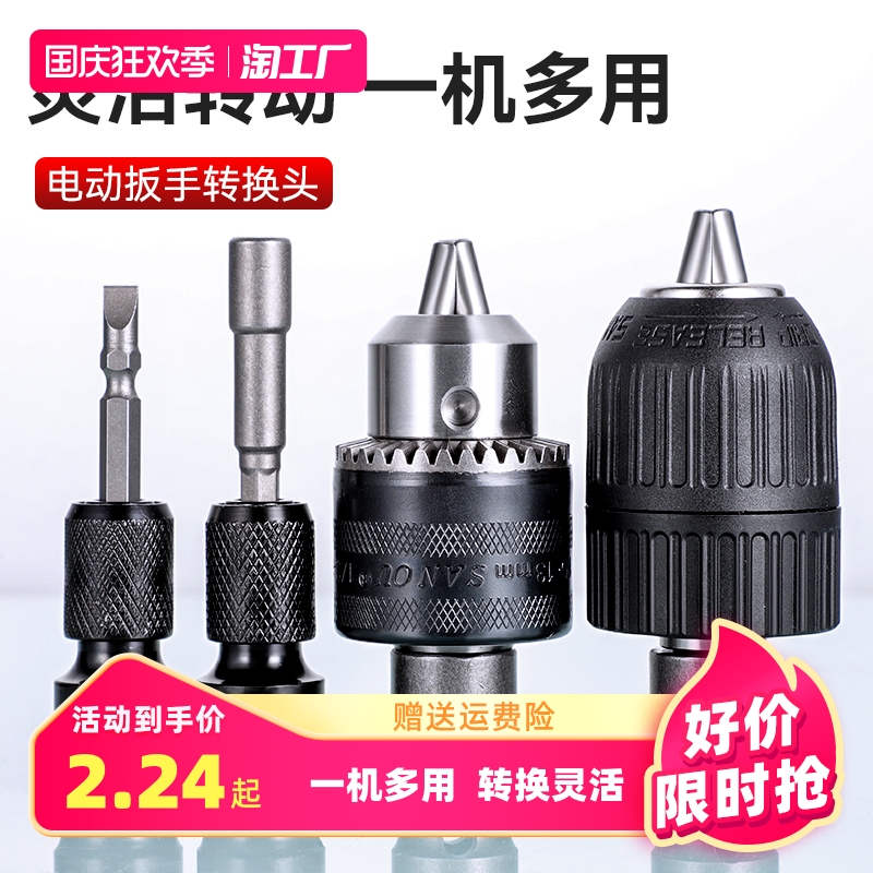 電動スパナ変換器懐中電灯ドリルチャックラチェット自動ロックジョイントファンヘッドピストルドリル部品