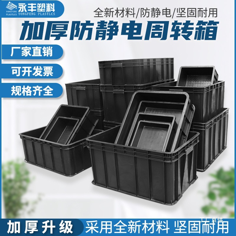 帯電防止ターンオーバーボックス電子工場ターンオーバーボックス PCB 長方形黒プラスチックバスケットプラスチックターンオーバー 8 極