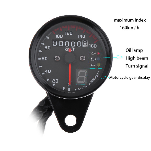 レトロバイク汎用多機能メカニカルメーター ステンレス製LEDバックライト付きスピードメーター ギア表示付き