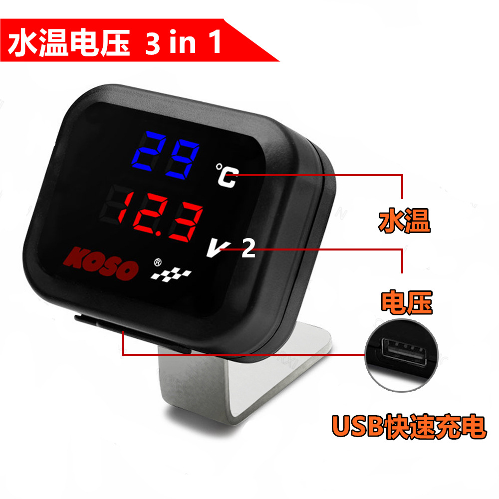 Koso水温計オートバイ電圧計多機能usb充電三合一電圧計空気温度室温