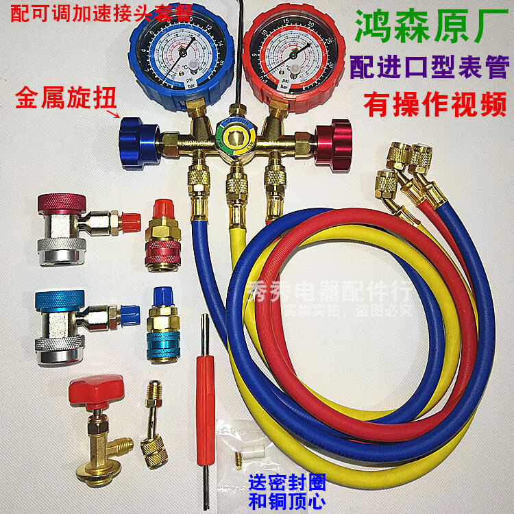 鴻森原工場自動車エアコンフッ素化計雪種圧力計冷媒計双計エアコン冷蔵庫修理ツール