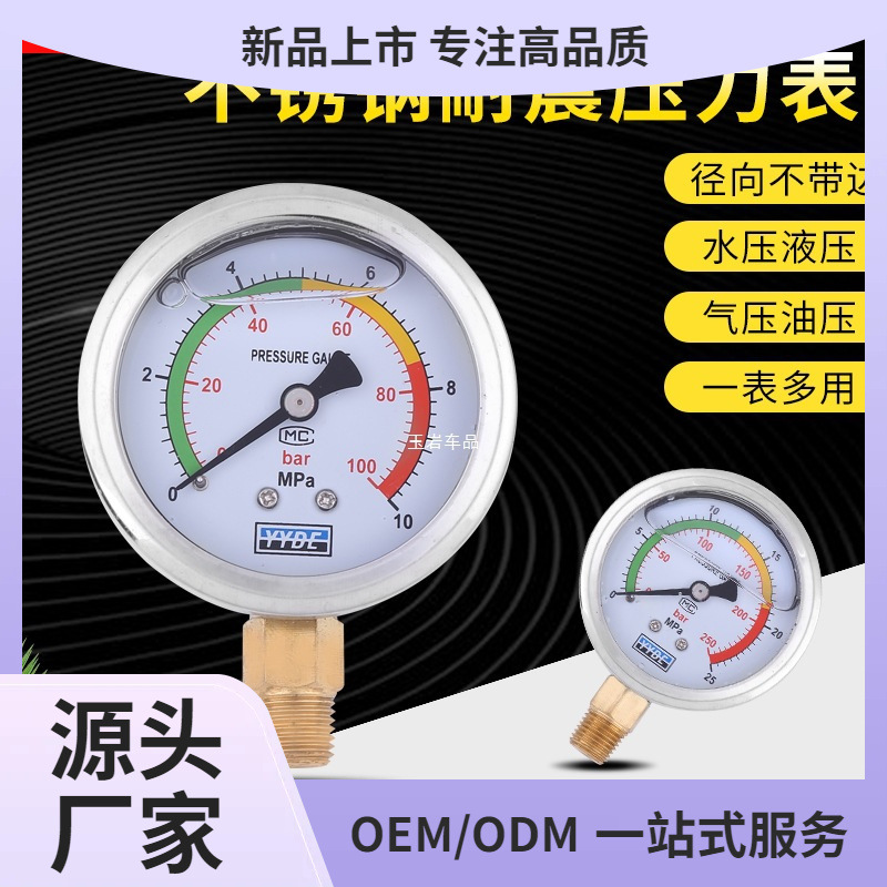 ステンレス耐震圧力計YN60/25/40MPA油圧油圧計水圧計防振気圧計2玉岩