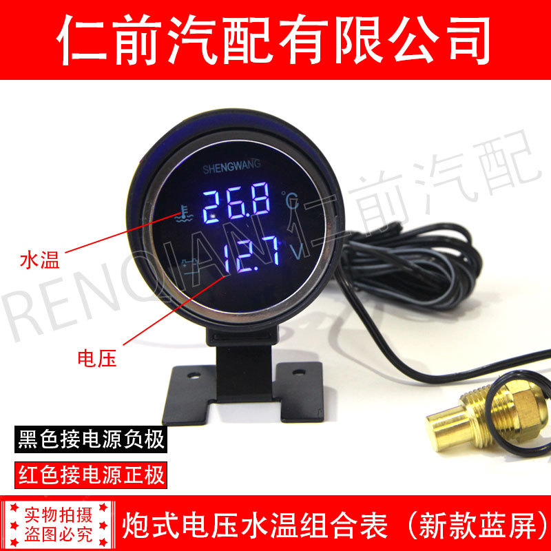 勝望12V24v自動車改造液晶水温電圧組合せ計警報高精度デジタル水温計
