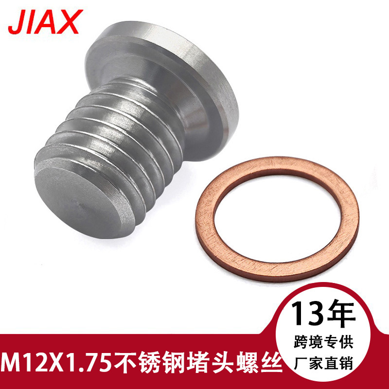 車用M12X1.75mmステンレス製六角穴付き止めねじ、赤銅製ガスケット付き、バイク排気管用ネジ