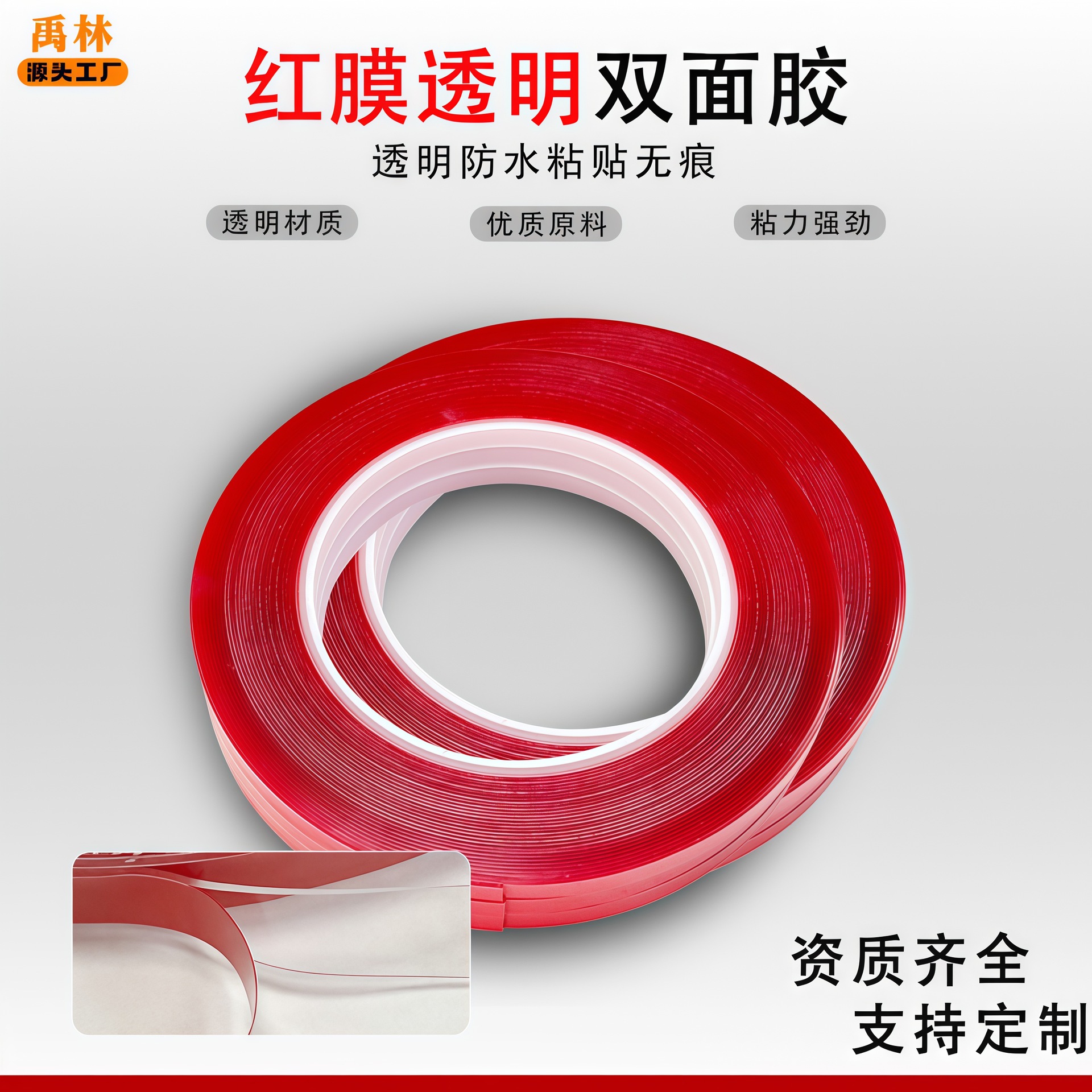 卸売り赤膜透明両面テープ強力無痕アクリルゴム防水耐高温両面テープ33メートル