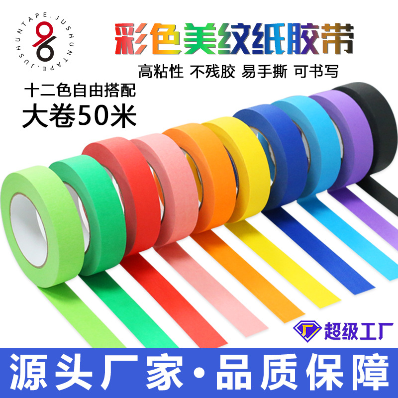 玖順カラー美紋紙色分解マスキング不浸透高粘着テープ50メートル美紋紙