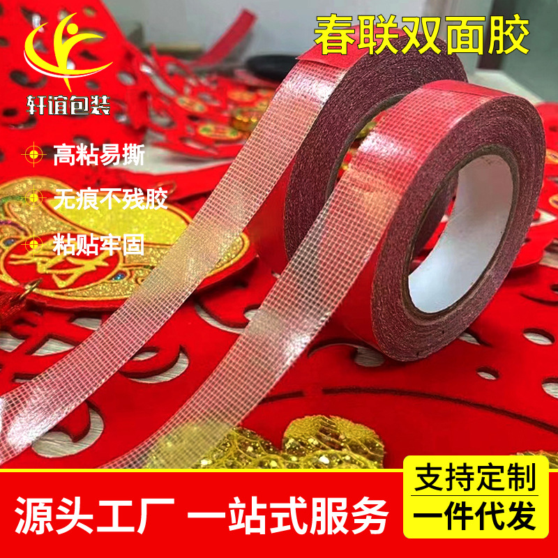 2026年春節用粘着テープ 赤い紙メッシュ布ベース両面テープ 強力粘着跡なし春節用ペアテープ 結婚式の部屋専用テープ