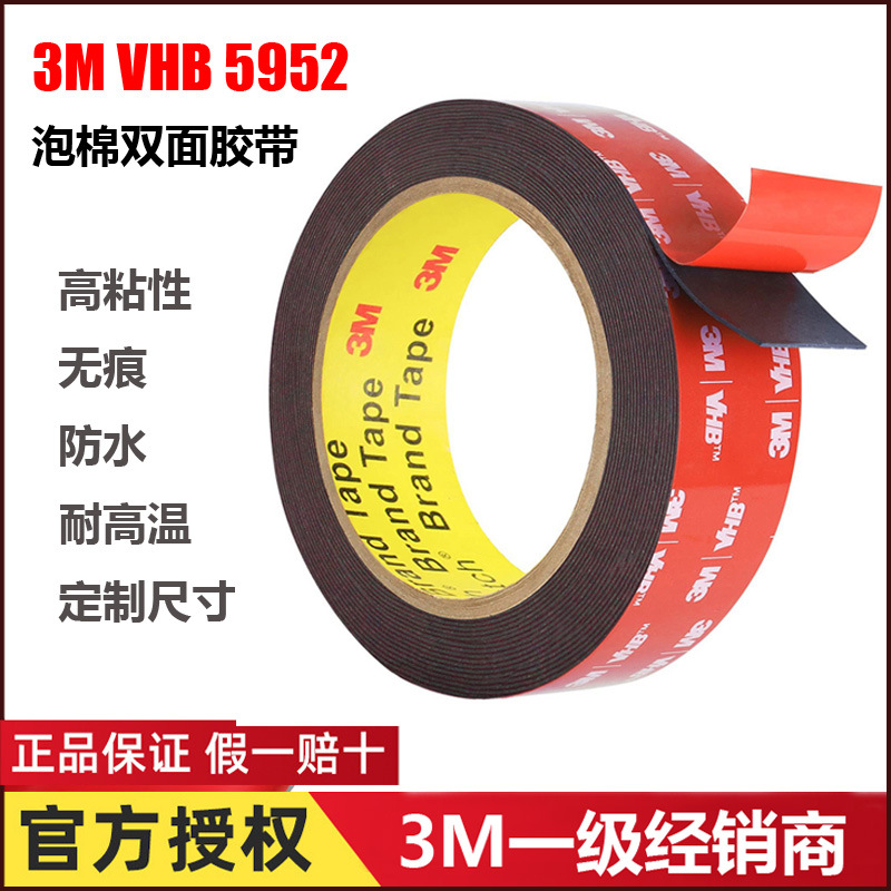 3m VHB 5952強力無痕vhbテープ高粘度耐高温車用黒色フォーム3m両面テープ