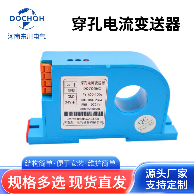 河南東川DQ703MBホール電流センサAC0-20A30A穿孔電流発信器dc 24v