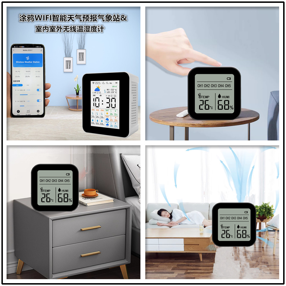 2CO17、Tuya WIFI スマート天気予報気象ステーション & 屋内屋外ワイヤレス温度湿度計