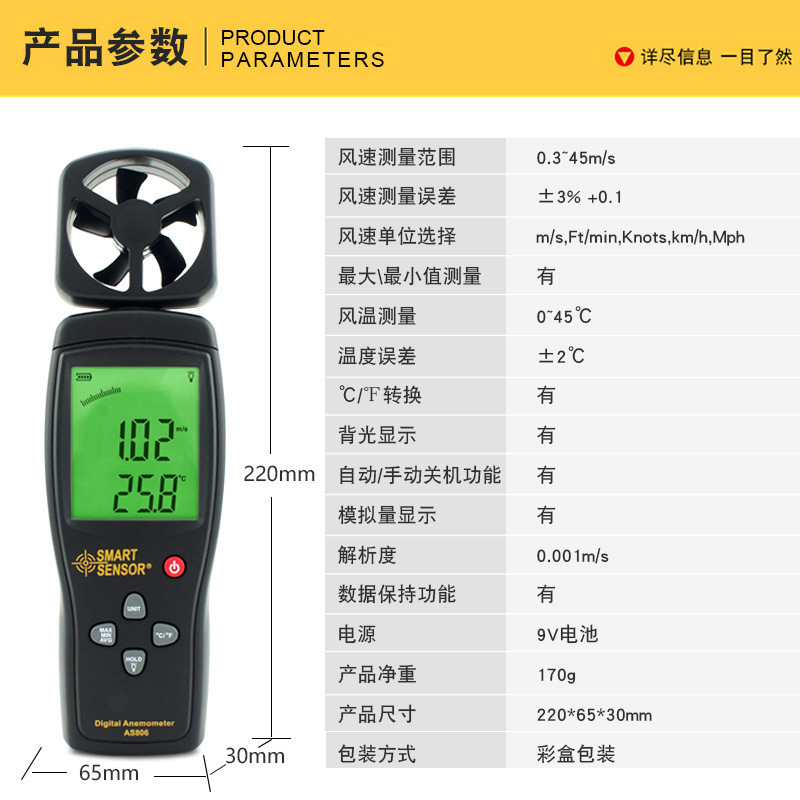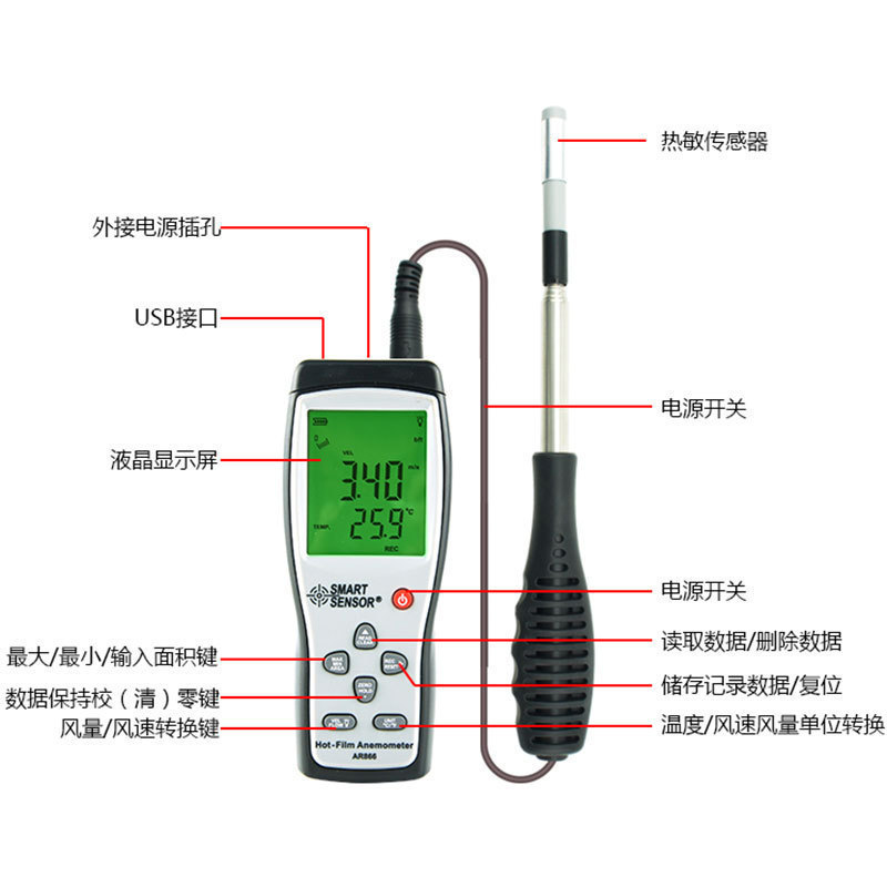 Hima (SMART SENSOR)AS806風速計インペラ風速測定器風速風温測定器