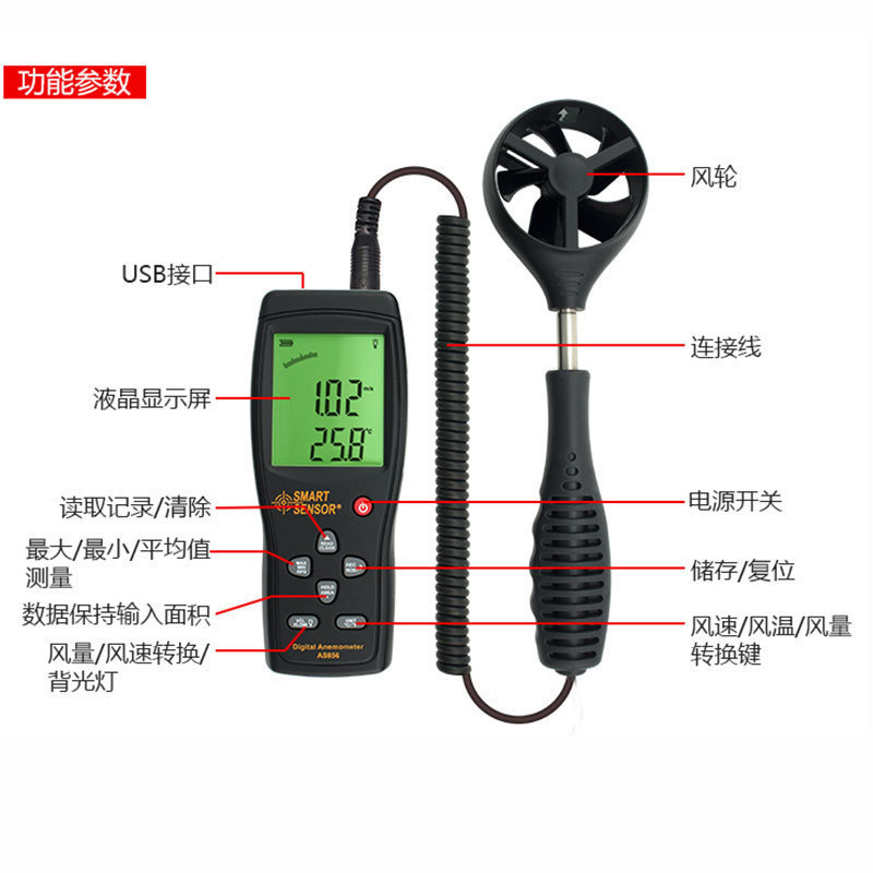 シーマAS856手持ち風速計工業風速計風速測定風速計分体式風温風量計