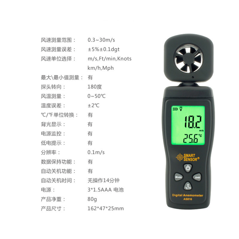 シーマAS816風速計デジタルミニ風計高精度ハンドヘルド風速計風速測定器