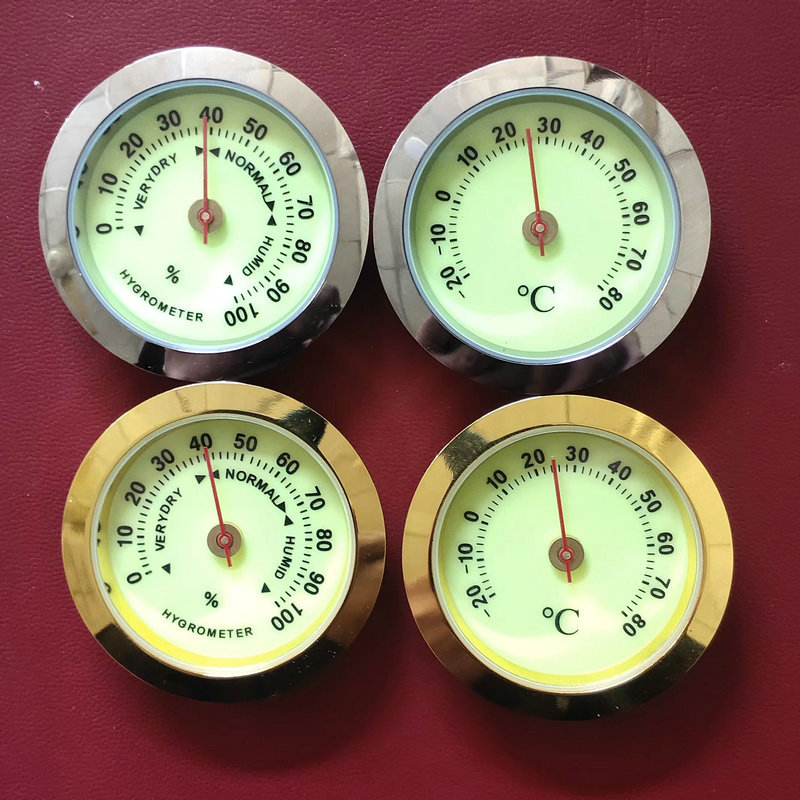 37mm楽器バッグ温湿度計夜光金指針式ミニ温湿度計金辺銀辺温湿度