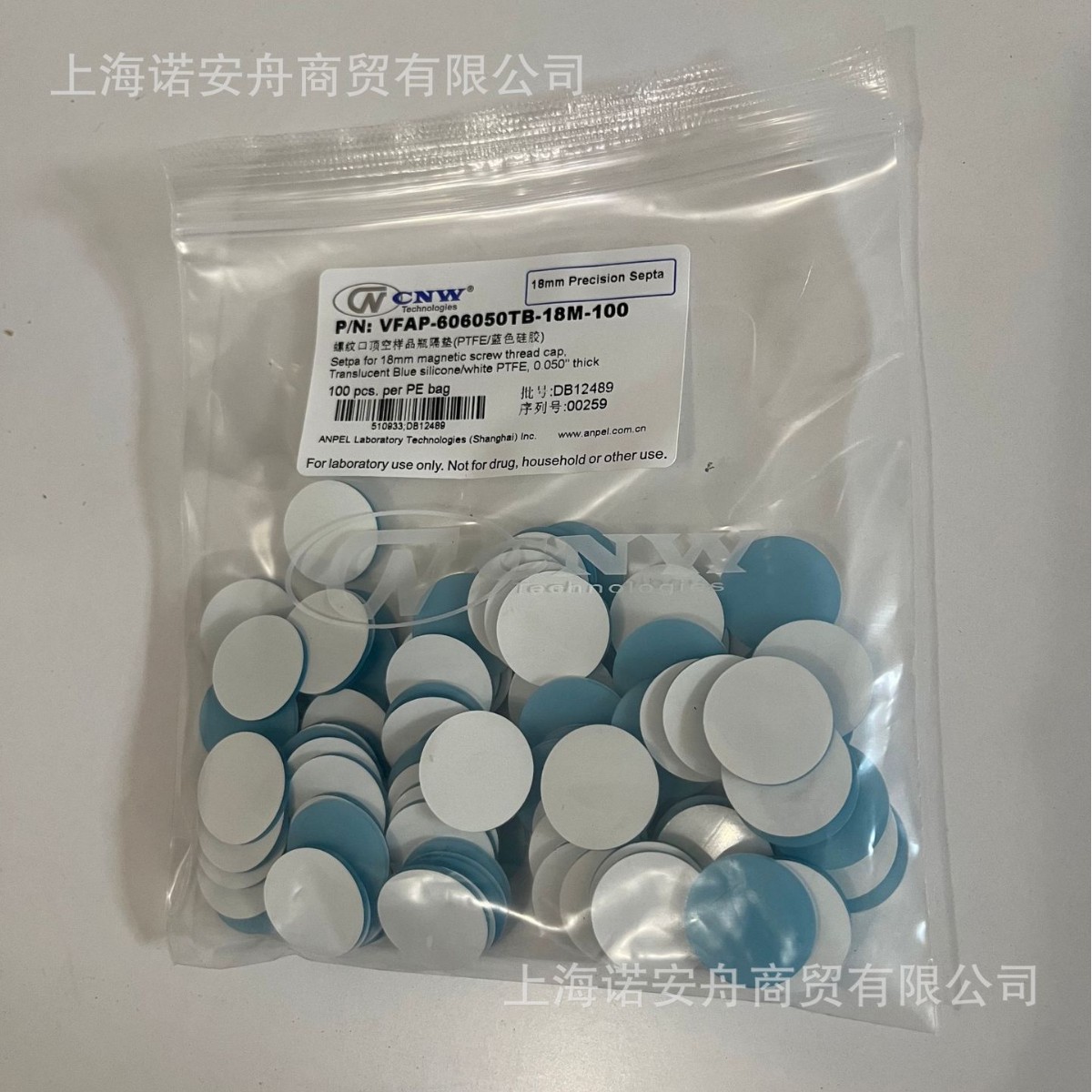 CNW VFAP-606050TB-18M-100ネジ口トップ空サンプルボトルスペーサー (PTFE/青色シリコーン)