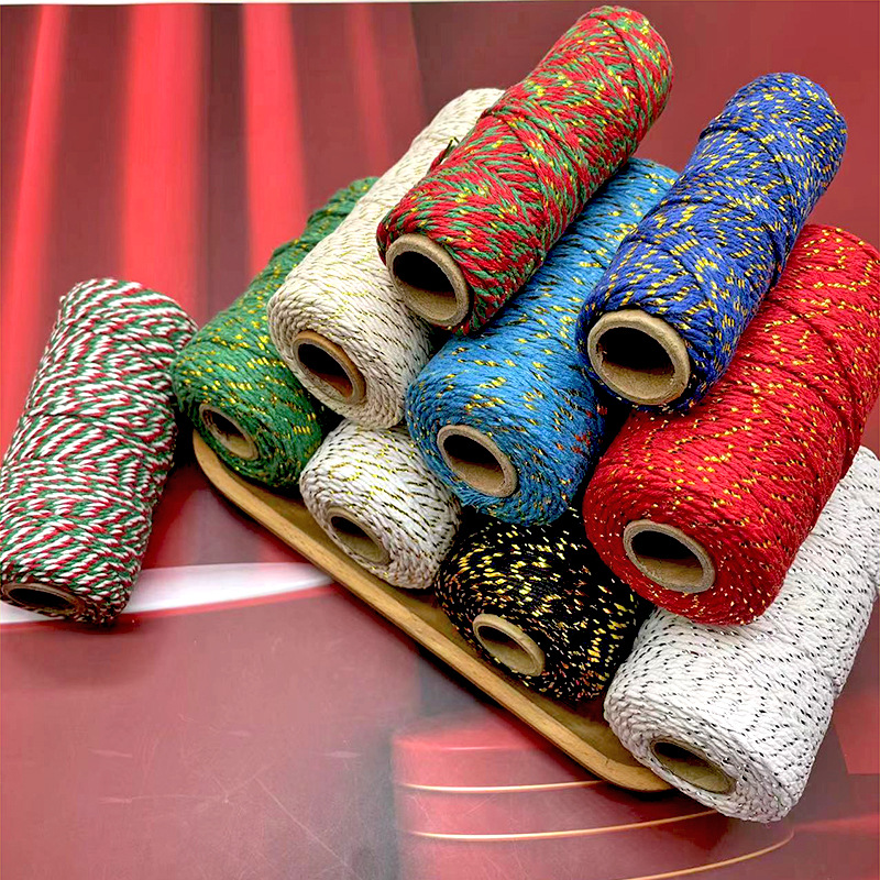 100メートル/金銀糸綿糸diy手織りギフト包装結束ロープクリスマス装飾ペンダントロープ
