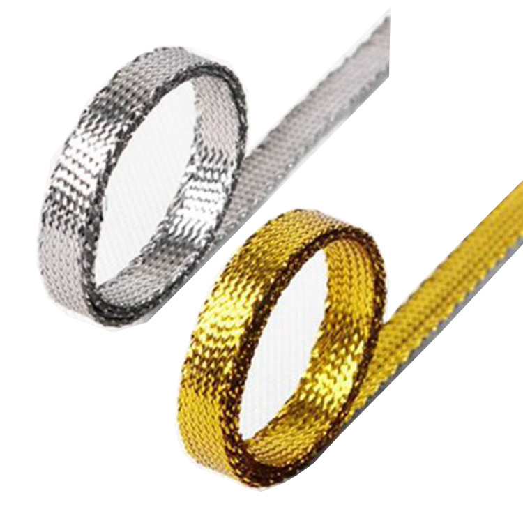 現物100メートルクリスマス韓網同金diy手作り装飾編み線材金銀線0.5センチ幅平帯